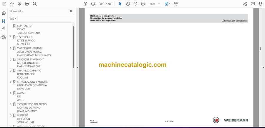 Weidemann 1390 StageV Wheel Loader Spare Parts Catalog (A01-01) (it, es, en)
