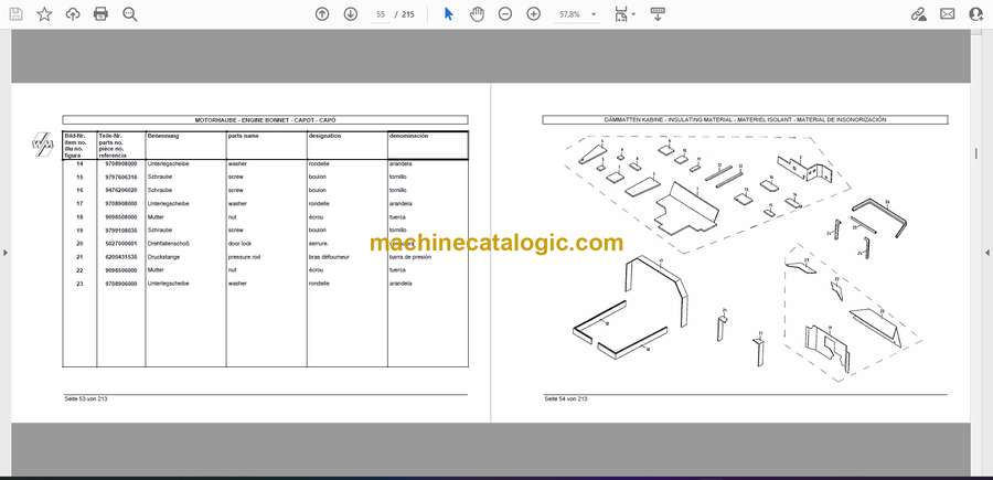 A Weidemann 2004 D/D wheel loader spends its life in tight yards, barns, and construction sites, shuttling pallets, feed, and bulk material. This parts catalog is what I’d keep open when I’m rebuilding an axle, chasing a hydraulic leak, or swapping out worn pins and bushings. When, for example, you find play in the front carriage or a cracked hose block, this book lets you pinpoint the exact version of the component and every seal and fastener that goes with it so you don’t tear it down twice.