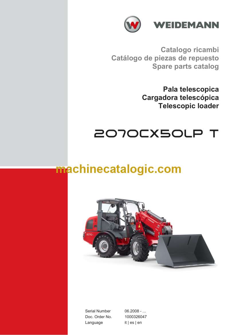 Weidemann 2070CX50LP T Telescopic Loader Spare Parts Catalog (06.2008 – …) (it, es, en)