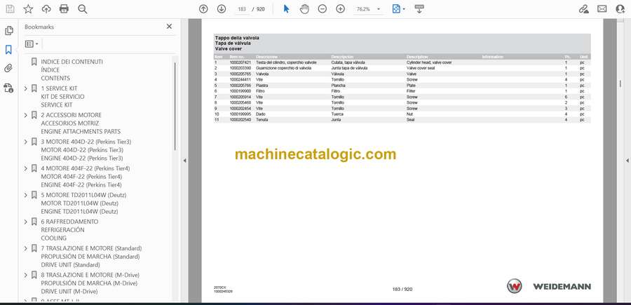 Weidemann 2070CXLP T Telescopic Loader Spare Parts Catalog (2070CX) (3026784 – …) (it, es, en)