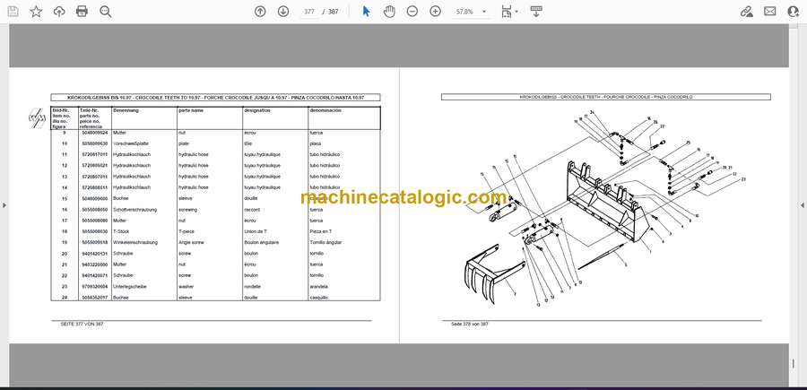 The Weidemann 3002 D/P wheel loader usually lives in tight farm yards, small construction sites, and material yards, loading manure, gravel, pallets, and feed all day. This parts catalog is what I keep beside me when I’m tearing down or rebuilding assemblies and need to match the exact parts revision on an older machine. If, for example, you’re chasing a sloppy loader arm or a leaking hydraulic joint, this book lets you trace the correct pins, bushings, seals, and fittings so you don’t guess or order the wrong style.