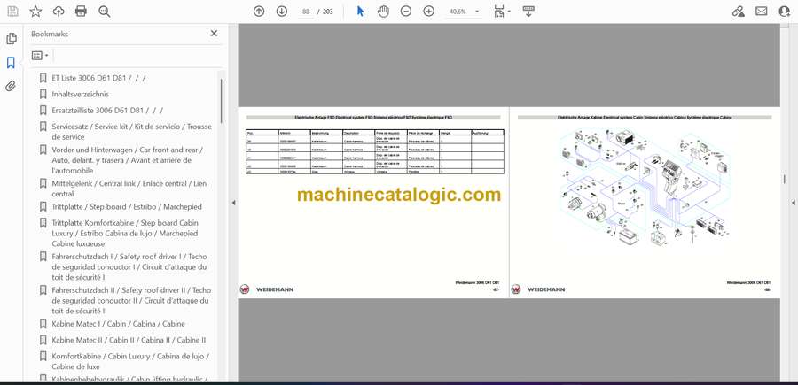Weidemann 3006 D61 D81 Wheel Loader Parts Catalog (5056300606)