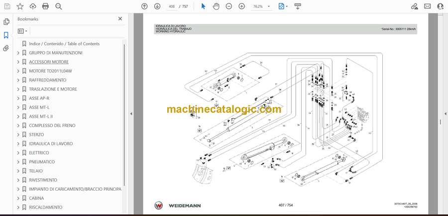 Weidemann 3070CX80 Tele Wheel Loader Spare Parts Catalog (3070CX80T_06_2008) (it, es, en)