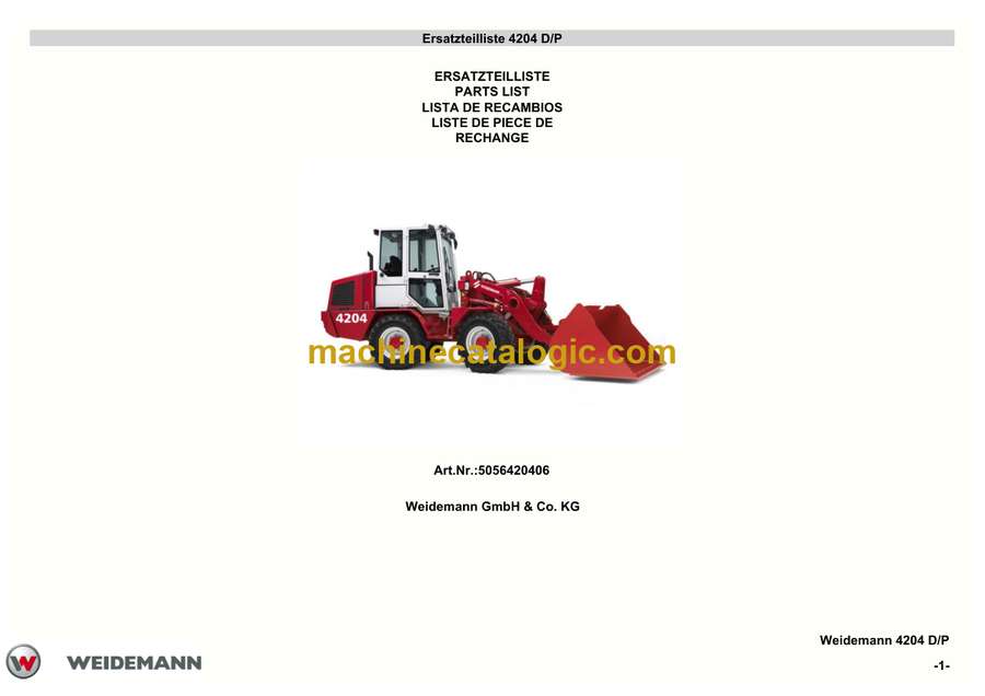 Weidemann 4204 D-P Wheel Loader Parts Catalog (5056420406)