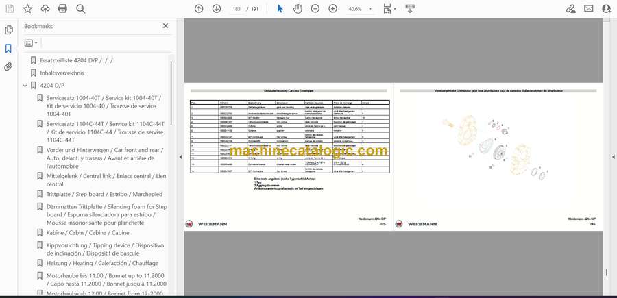 On a Weidemann 4204 D/P working in yards, barns, or tight construction sites, this parts catalog is what I’d keep open whenever I’m tearing into the loader or ordering spares. It helps you pinpoint the exact component layout, match the right revision of parts, and avoid guesswork at the counter. Say you’ve got a leaking hub or a damaged linkage—this book lets you trace every seal, bushing, and spacer in that assembly so you don’t miss a tiny ring that will stop the whole repair.