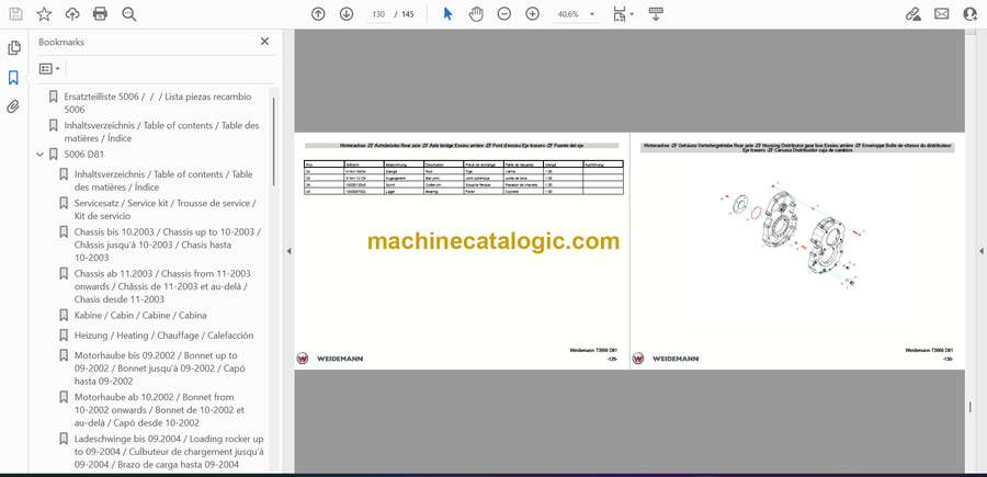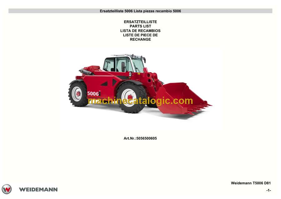 Weidemann 5006 Wheel Loader Parts Catalog (5056500605)