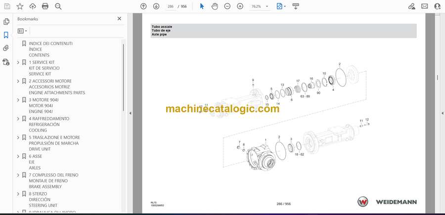 A 5080 Stage V loader usually spends its life in yards, farms, and construction sites, shuttling buckets, pallets, and attachments all day. This parts catalog is what I’d keep open when I’m stripping a joint or chasing a leak and need to be sure I’m ordering the exact Weidemann parts back in. For example, if a lift cylinder starts weeping, I use this to pull up the correct exploded view, trace the gland, seals, and wear rings, and make sure I don’t miss a tiny O‑ring that will put the machine back in the shop next week.