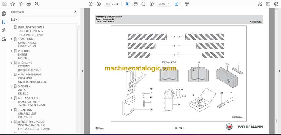 Weidemann 8080 CX120 Wheel Loader Spare Parts Catalog (345-02) (345020001 – …) (de, en, fr)