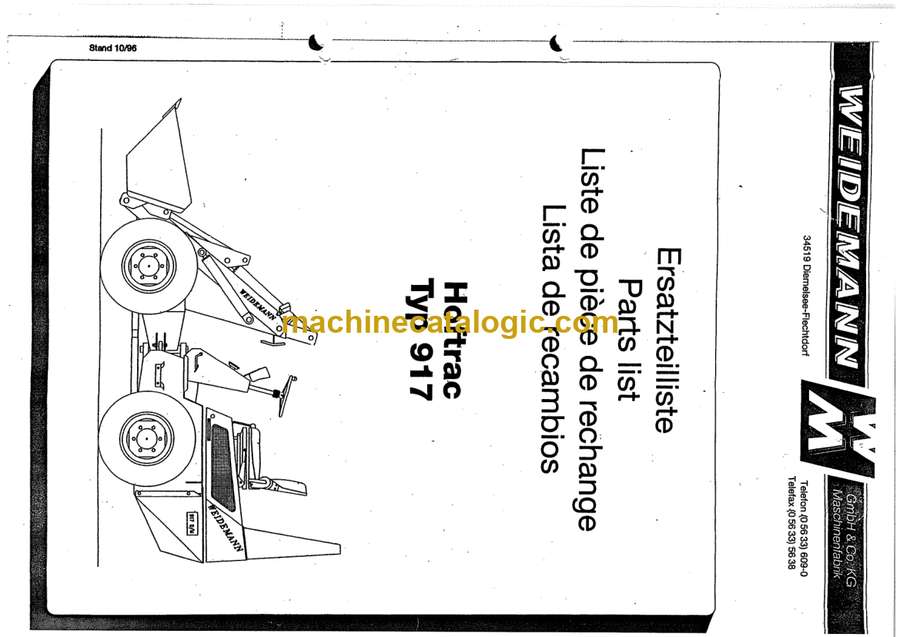 The Weidemann 917 Hoftrac usually lives in tight yards, barns, and feed alleys, doing loader work where space is cramped and downtime hurts. This parts catalog is what I’d keep open when I’m rebuilding the central joint, chasing a hydraulic leak on the loading arm, or putting the bonnet and steps back together after other repairs. It lets you match the exact style of pins, bushings, seals, and brackets fitted to your machine so you don’t guess at parts, especially when there have been revisions over the years.