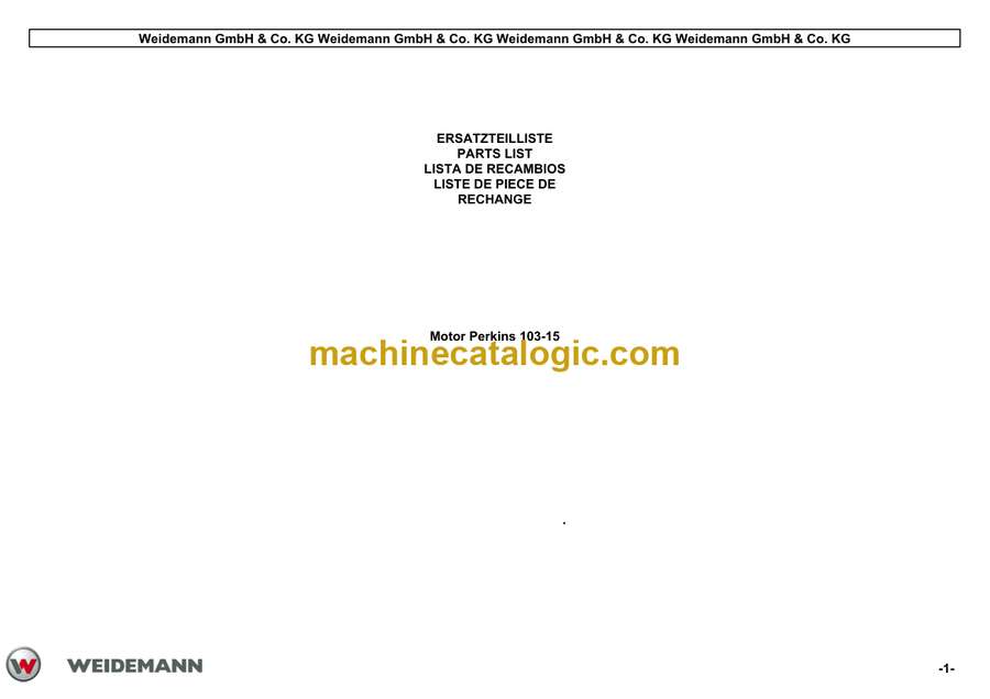 Weidemann Perkins 103-15 Engine Spare Parts Catalog
