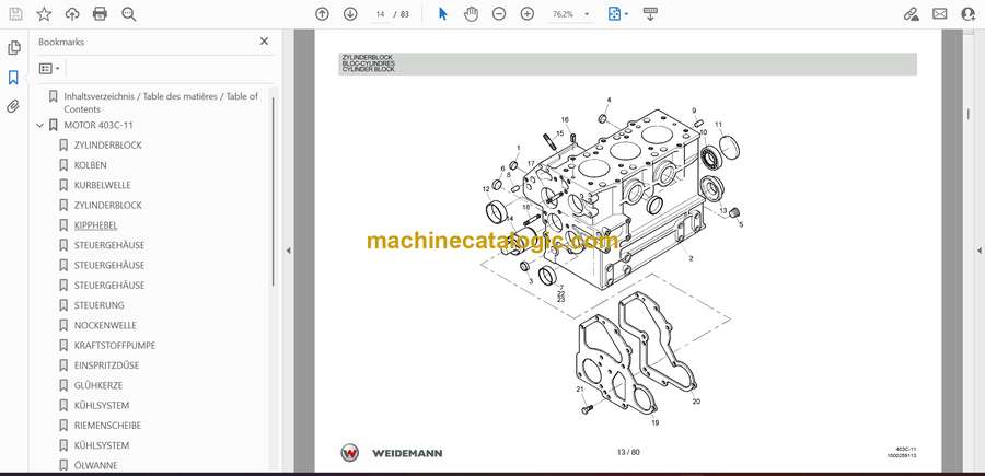 On a Weidemann with a Perkins 403C-11, this catalog is what I keep nearby when the machine comes in from yard work, stable duty, or tight construction sites and I’ve got the engine stripped down. It lets you match exactly which version of the 403C-11 you’ve got and then trace every component in an exploded view. If I’m chasing an oil leak around the block or swapping a damaged front cover, this is how I verify the right gasket set, seals, and small hardware so I don’t have the engine half-built and discover one missing O-ring.