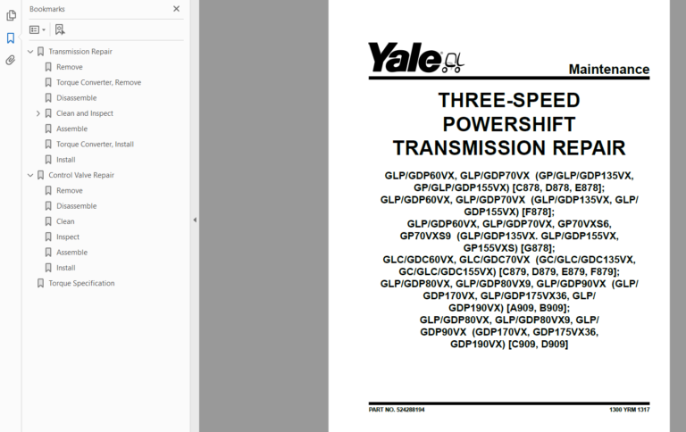 4- Yale Forklift Class 4 Internal Combustion Engine Trucks Cushione Tire Service Maintenance Manual 3.89 GB