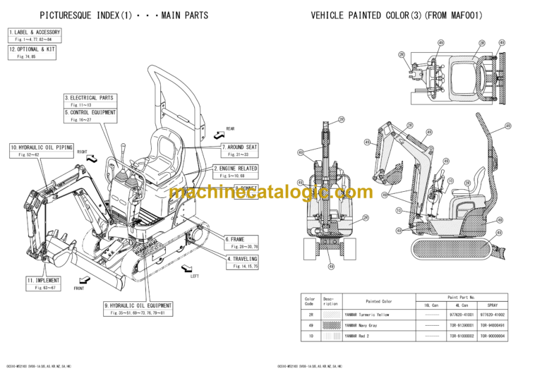 Yanmar SV08-1A Excavator Parts Catalog (0CS10-M52103EN)