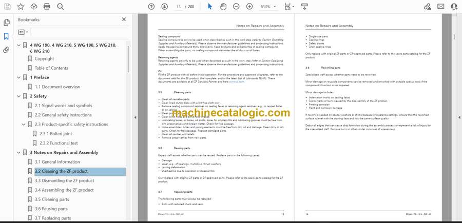 These ZF 4WG/5WG/6WG Ergocontrol 2 transmissions usually live in loaders, telehandlers, and other construction gear that spend their days in dust, mud, and cold starts. This repair-stage manual helps you trace faults inside the transmission and control system instead of just throwing parts at it. Say the machine won’t shift out of second and the dash is lit up; with this, you can isolate whether it’s a solenoid, wiring, valve body, or a mechanical issue before you start tearing things apart.